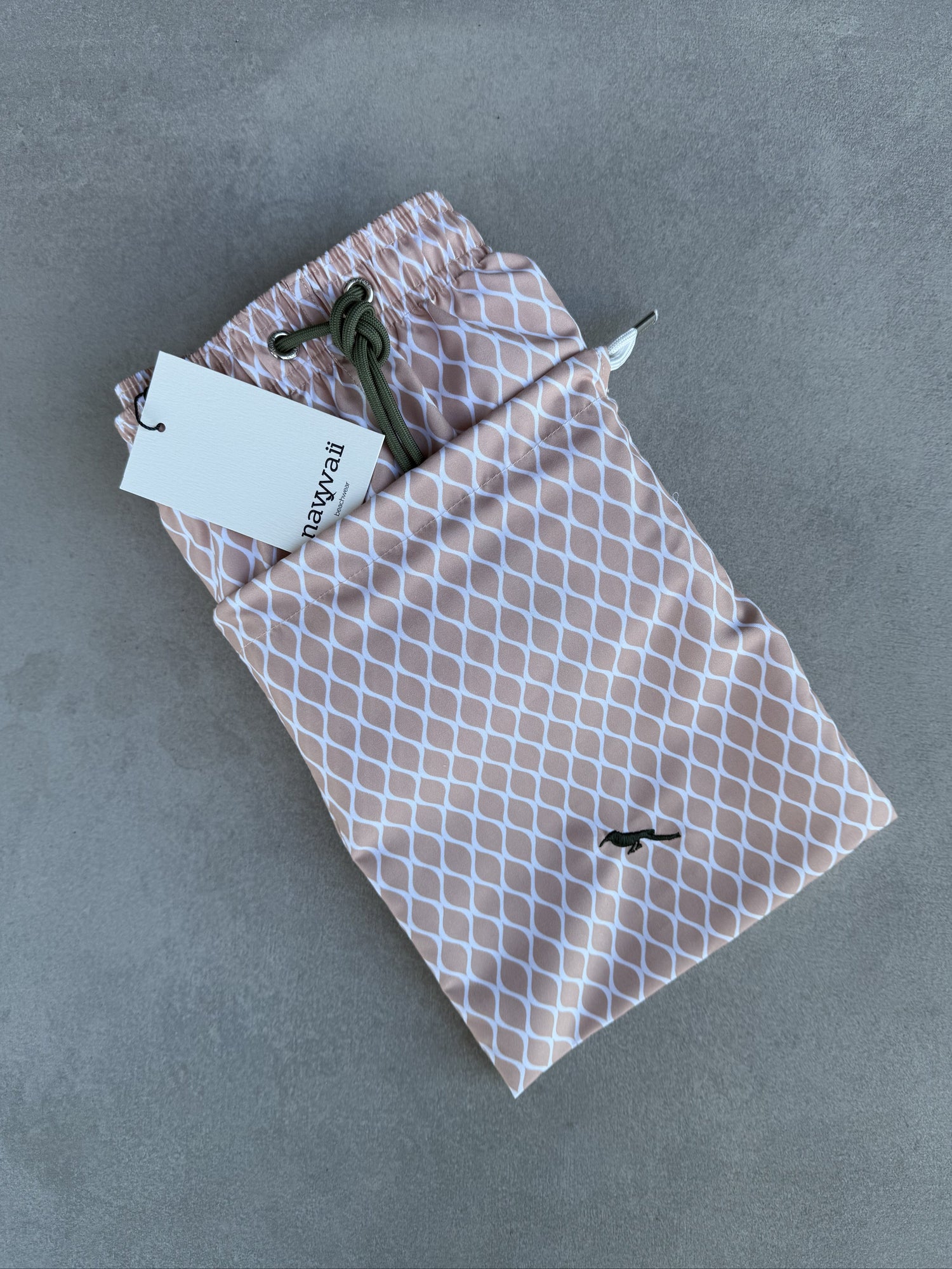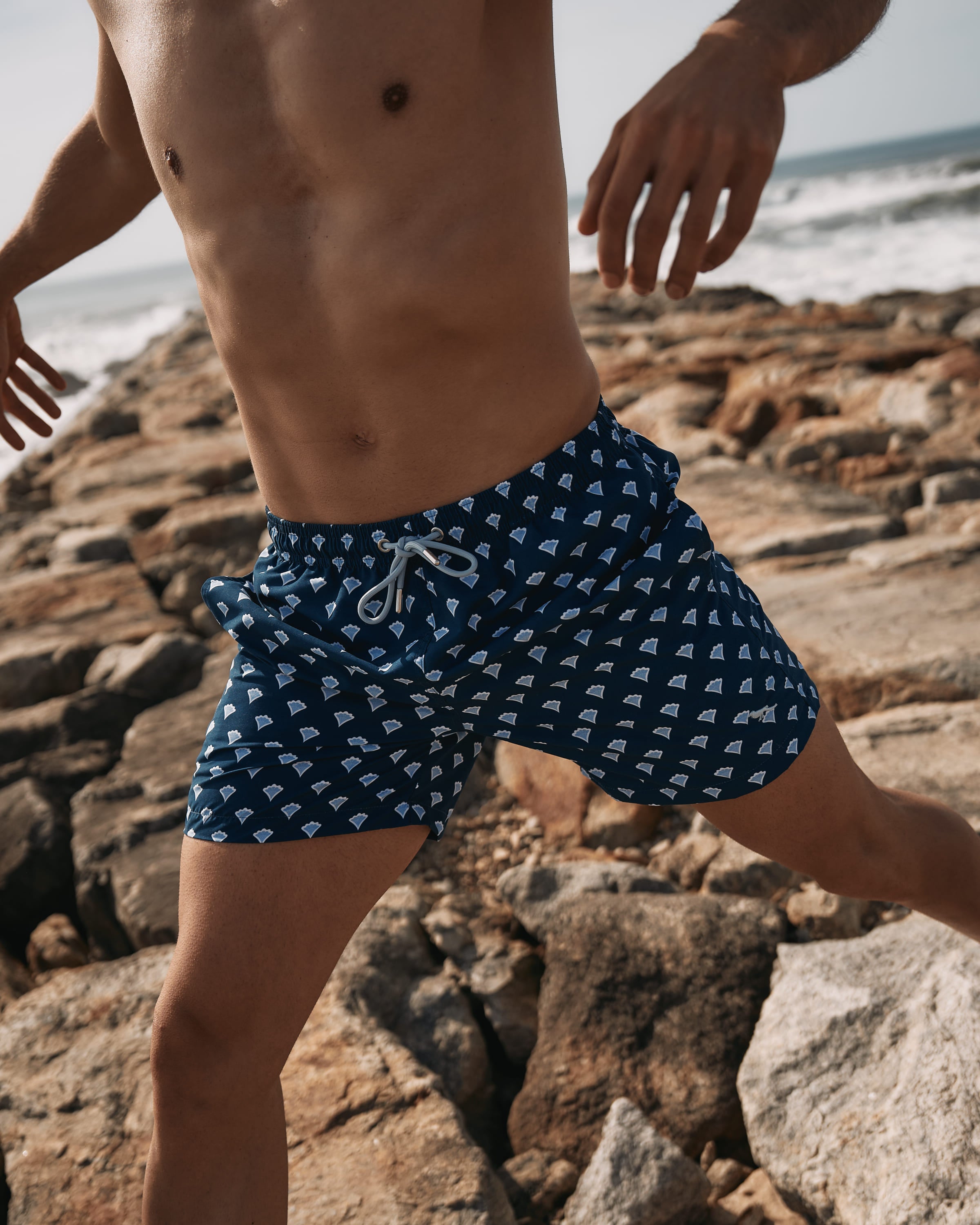 Each pair of our swim shorts comes with a matching bag, carefully crafted from the same fabric and pattern.